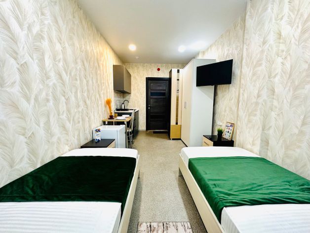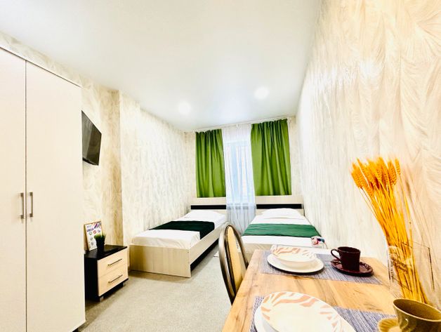 - Оборудование: микроволновая печь, набор посуды, плита электрическая, стиральная машина, телевизор, холодильник, электрочайник